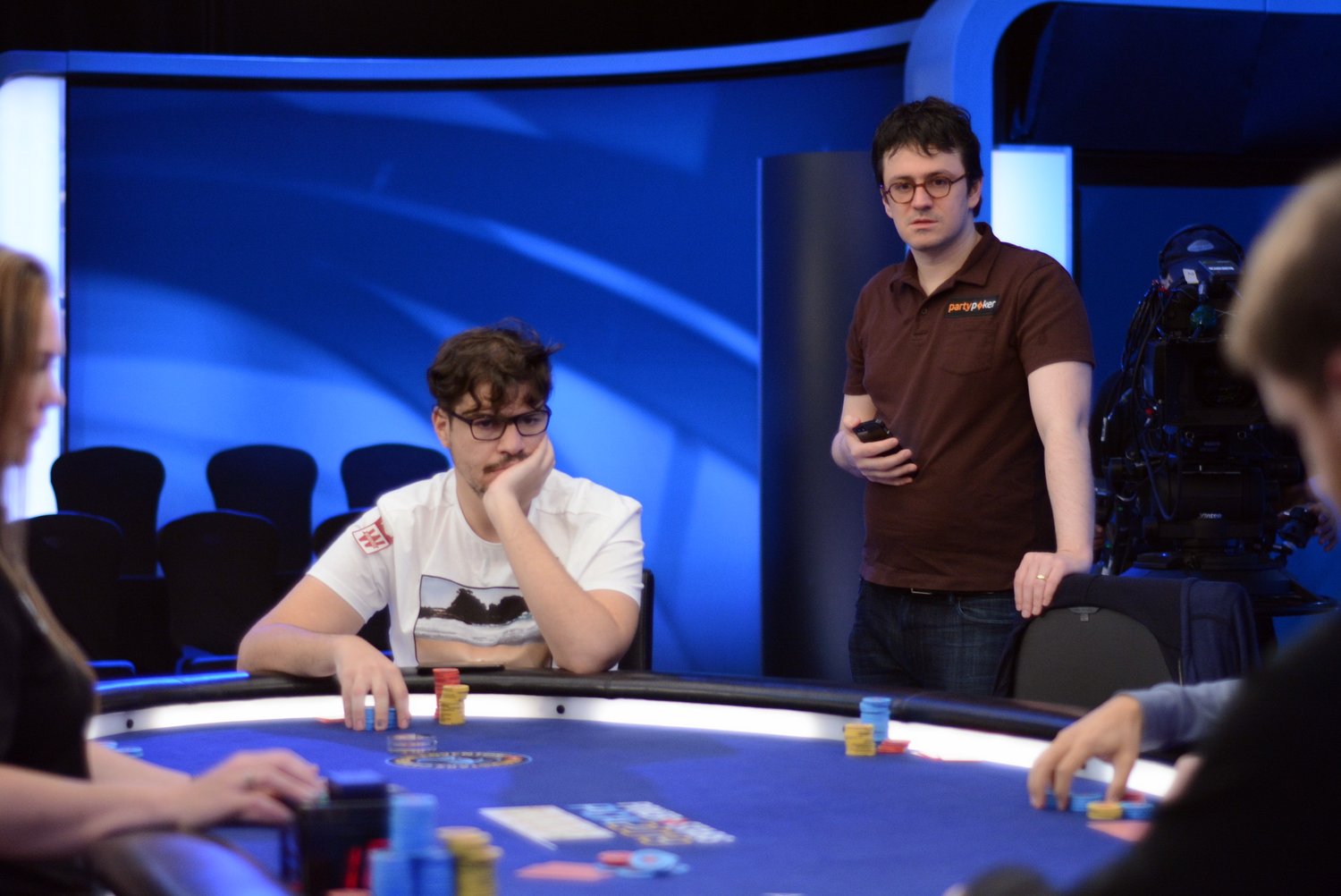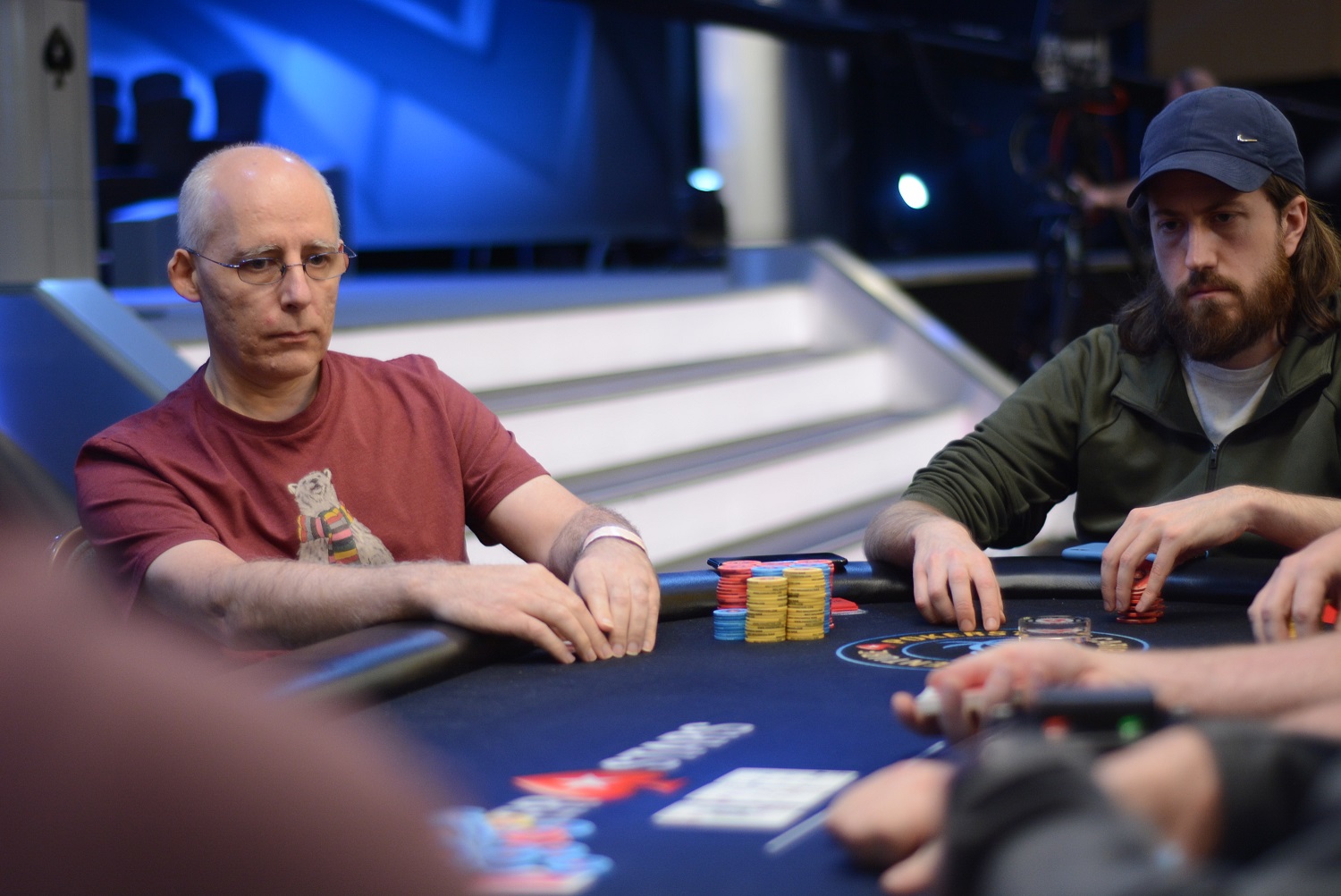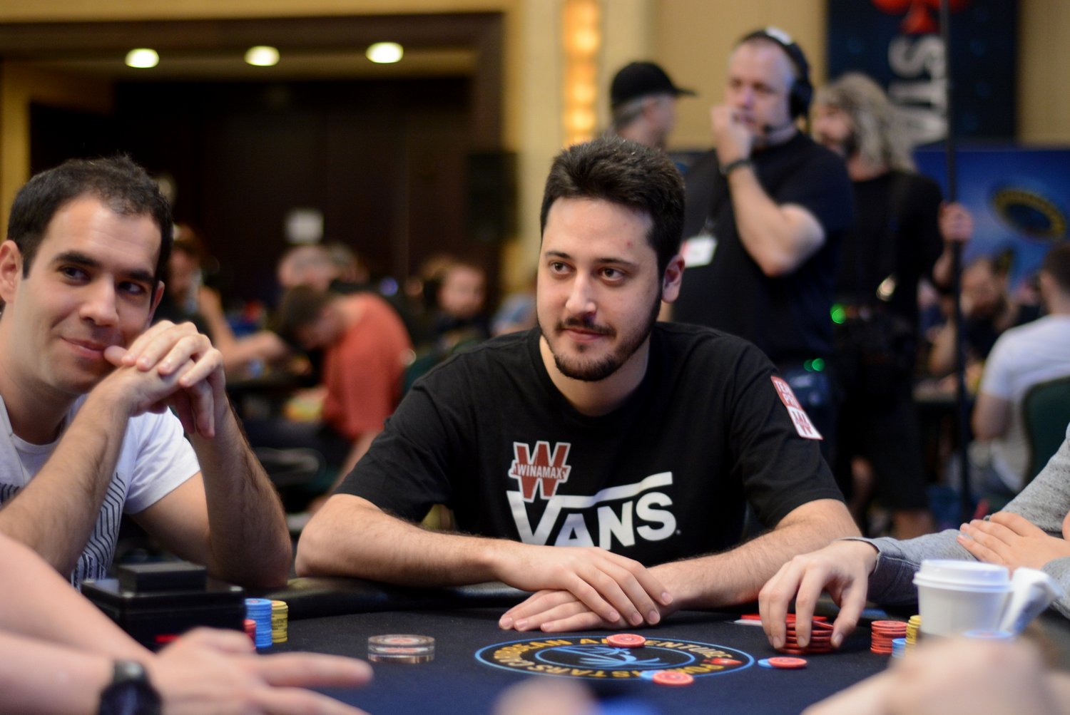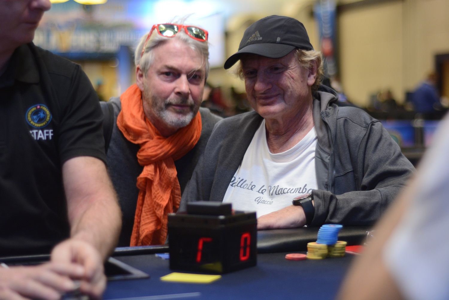 On le voit, Mustapha Kanit a vécu un très bon Day 1. Entamé en table TV (rendez-vous sur la chaîne Twitch de PS pour suivre en quasi-direct), son Day 2 se pass pour le moment de façon similaire : notre moustachu préféré a réussi un très joli bluff contre Isaac Haxton (à droite sur la photo), avec un check/raise all-in en semi-bluff sur un board 8