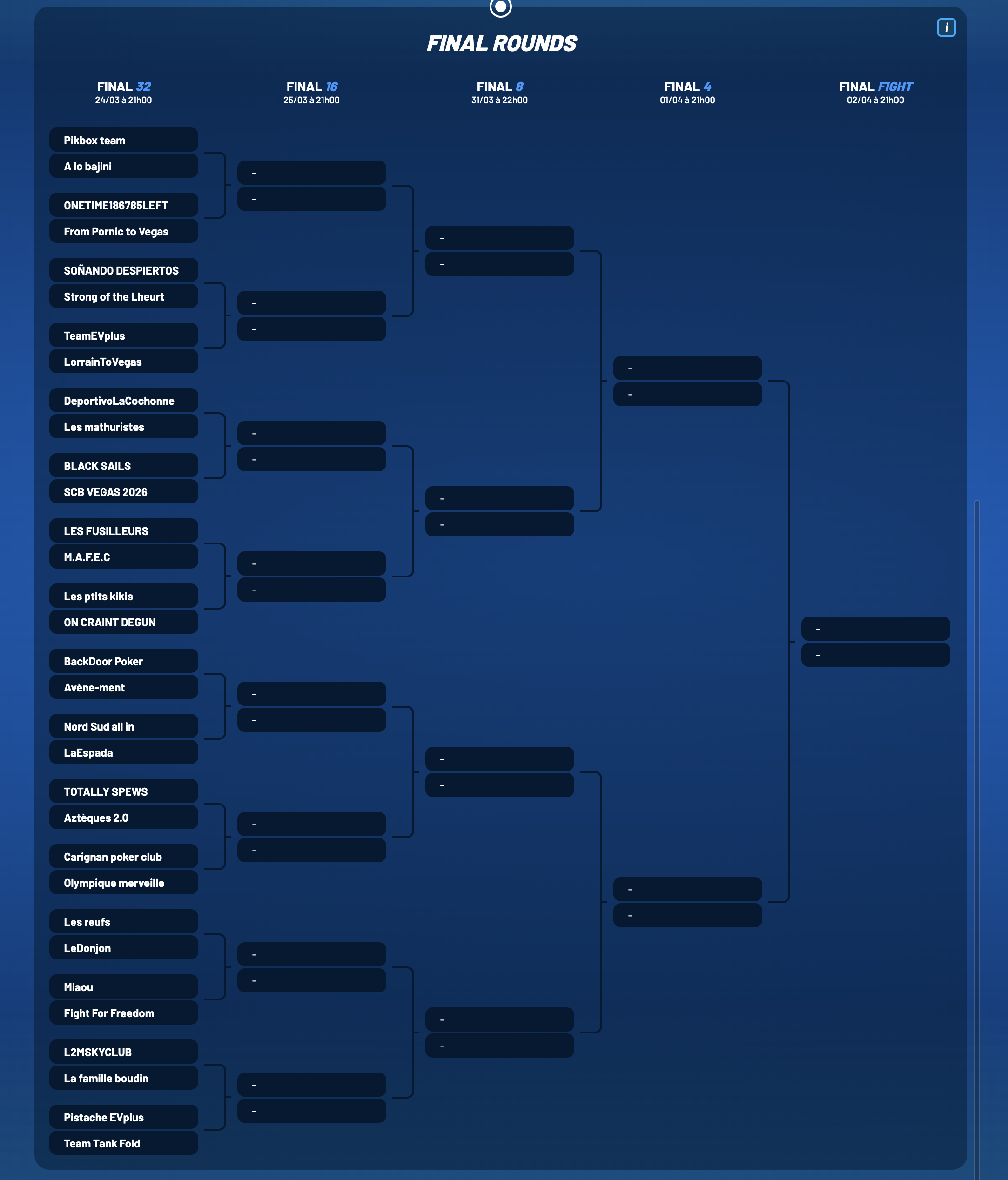 Les Keep the peach crew (26e) partent avec un avantage certain avec E.Amundi dans leur rang. Le reg parisien croisé aux tables du WPO Aix-les-Bains et passé dans Top of the Pok, qualifie son équipe en ramenant 10 788 points.