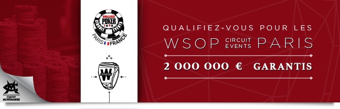À partir du 17 novembre, le légendaire World Series of Poker Circuit est de retour dans la capitale. Winamax met les bouchées doubles pour tenter de vous faire remporter une Bague de Champion WSOP en vous qualifiant pour pas moins de douze Events avec un dispositif de satellites exceptionnel, tous les jours jusqu'au 8 décembre. Du l'Event Online à 300 euros au Main Event à 1 500 euros, il y en a pour tous les goûts et toutes les bourses.