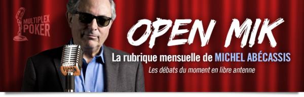 Cette semaine, Michel Abecassis vous donne le micro pour un nouvel Open MIK. Au sommaire des débats : l'éternel affrontement entre le poker live et le poker online. Un sujet brûlant et toujours d'actualité dont vous pourrez discuter avec le Doc qui sera pour l'occasion accompagné de Gaëlle Baumann et et de Jean-Louis Tourre.
