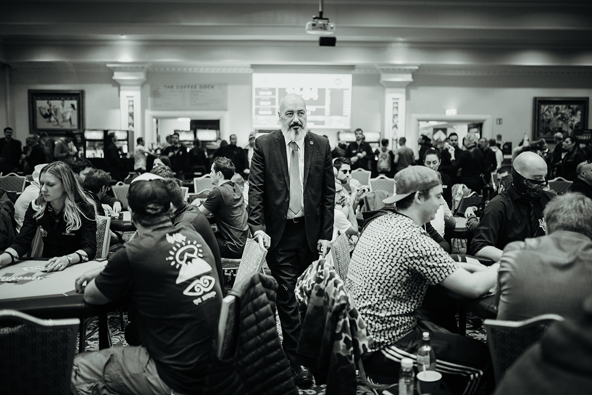 Rescapé #1 En table 15, Simon Vaur (photo) relance et 4-bet à tapis pour 210 000 après s'être fait 3-bet par Victor Ramalho de petite blinde. Ses deux Rois vont survivre à l'épreuve du showdown face à As-Dame, et lui permettre d'emmener son tapis au dessus de la moyenne.Les superviseurs veillent à ce que le processus de "hand for hand" se déroule sans accroc