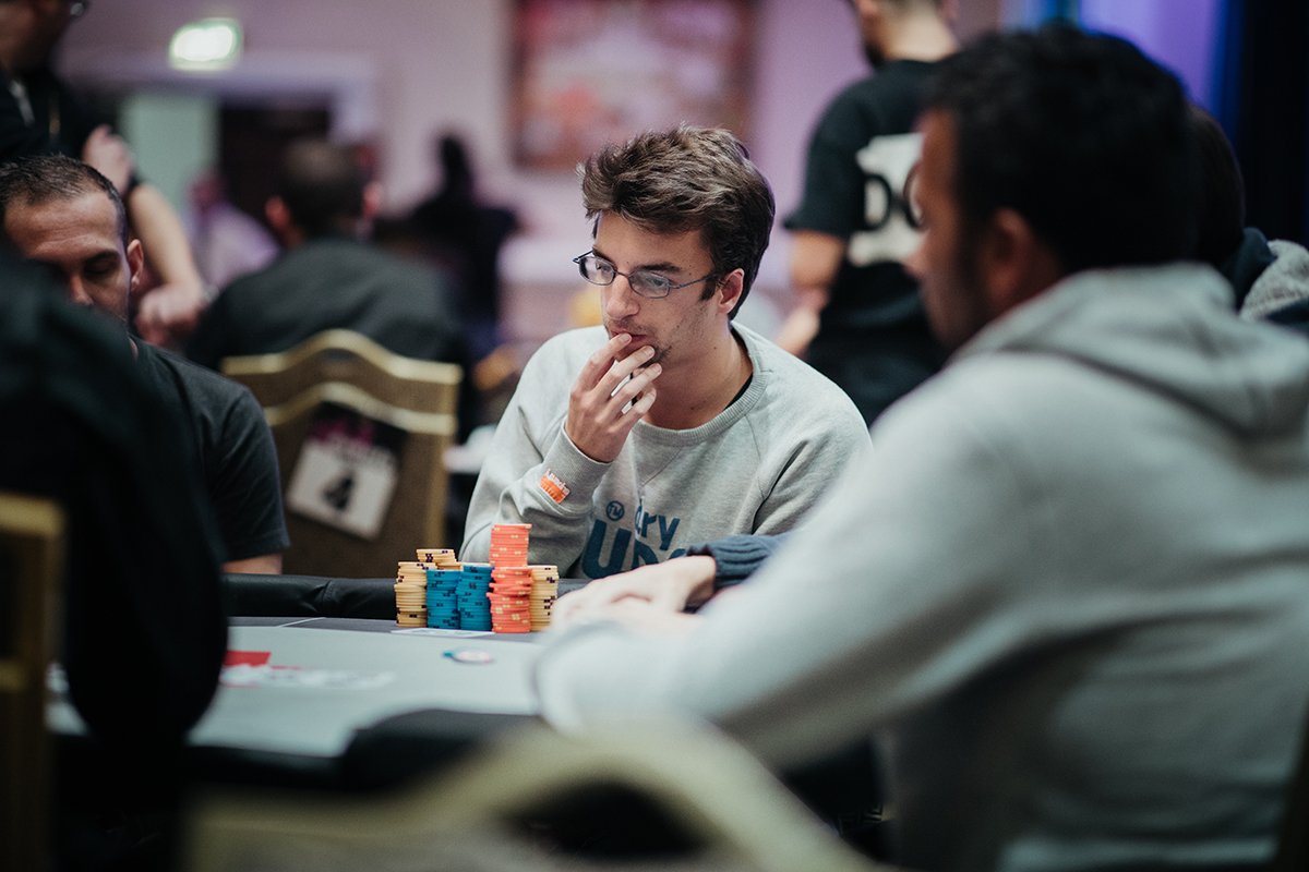 Parfois, ils ne trouvent pas preneurs, comme Mohamad El Rais. Suite à une ouverture à 45 000 de Matthieu Lamagnère, Mohamad fait monter les enchères avec une relance à 160 000. À sa gauche, Maxime Parys (photo) prépare minutieusement ses jetons orange : ce sera un cold 4-bet pour 310 000. La réponse de Momo est immédiate : tapis pour le reste des pions de Max, qui abandonne son jeu en un quart de seconde.