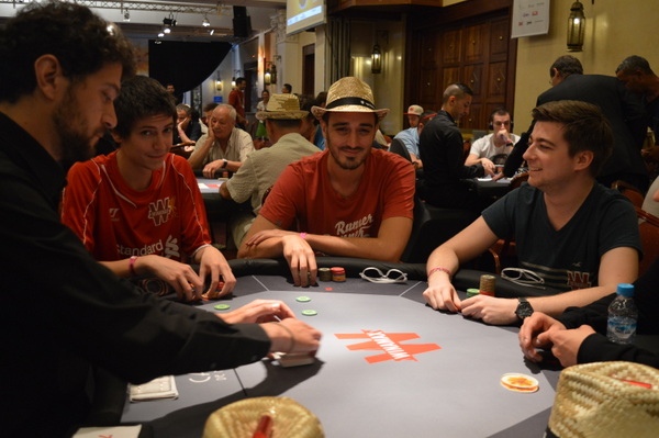 Dans tous les coups, ou presque, notre joyeux drille de la bande de WIP venue en nombre à Marrakech, a dans un premier temps multiplié son capital de 5 000 à 10 000, sur un coup à tapis pré-flop étonnant au regard des mains (A6 d'un côté, T9 de l'autre ; pourquoi pas ?) avant de finalement disparaitre de la circulation. Benoit Du Pac est dans les temps pour plonger une tête du côté de la piscine de l'hôtel avant d'éventuellement retenter sa chance grâce au système de re-entry.