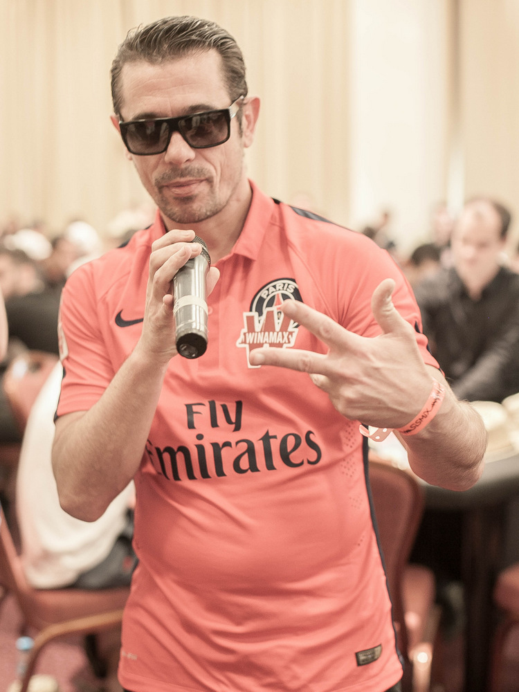 La salle est encore clairsemée mais ne demande qu'à se remplir. WIP, réguliers du circuits, qualifiés Winamax, locaux, le plateau de ce Day 1A est alléchant et devrait donner lieu à quelques beaux échanges à table. Juste le temps pour les retardataires de faire connaissance avec leurs compagnons d'un jour, que Kool Shen, maillot du PSG sur les épaules fait son entrée dans la salle. Dans son style caractéristique, le Team Pro peut lancer aux alentours de 12h30 le fameux Shuffle up & Deal !