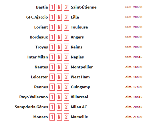 Peux-tu nous proposer un combiné de ton choix pour le week-end de sports à venir ?
