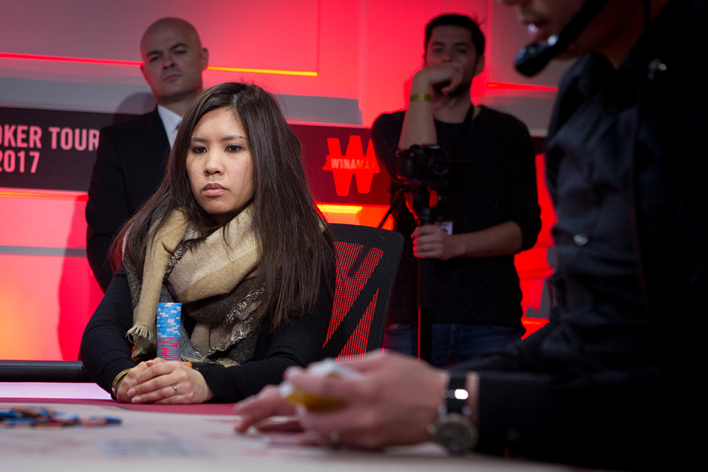 Sandrine Phan a tenté à plusieurs reprises de remettre en cause la hiérarchie de cette Finale, mais a sans doute été rattrapée par la pression. Laissée en mauvaise posture par un énième combo limp préflop-check/raise all-in au flop de l’ami Guy Noblet, elle crut l’espace de quelques secondes pouvoir poursuivre l’aventure un peu plus longtemps en doublant face à Laurent Patroni, mais fut rattrapée par un ultime As sur la rivière. Celle qui officie du côté de notre service clientèle signe de loin son meilleur résultat en tournoi live, une très belle quatrième place valant 41 000€.