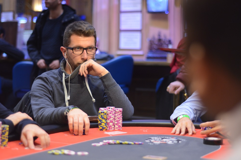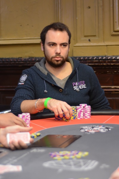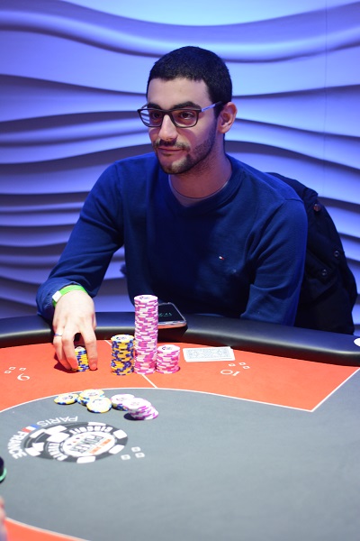À l'autre bout de la salle, le revenant Jonathan Layani - avant ce festival, on ne l'avait plus vu dans les places payées d'un tournoi depuis le Main Event de l'EPT Londres en septembre 2011 - et ses 1,3 millions de jetons ont une vue dégagée sur l'imposant stack de Hedi Gobteni (photo, ci-dessous), lui aussi plutôt bien doté.