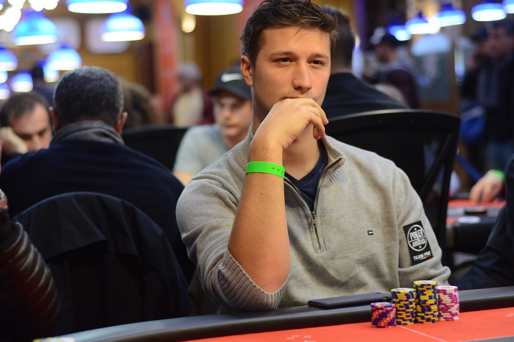 L'homme qui avait plus de jetons que tous les autres au début de cette journée c'est lui, Grégoire Fichter. Aux dernières nouvelles, il pointerait aux alentours des 850 000.